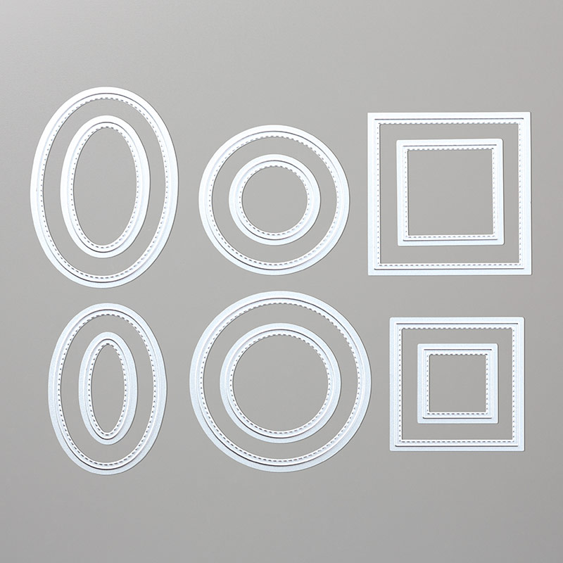 For the sentiments I used stitched shapes Die and Scallop square from the Layering Squares Dies.