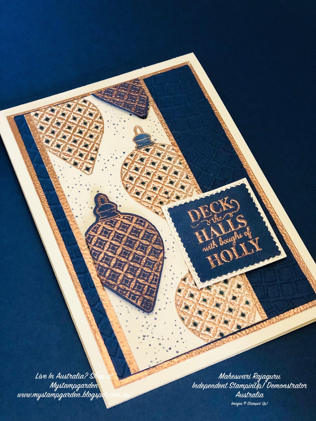 I used Stampin’ Up! Christmas Gleaming stamp set from the Holiday Catalogue-2019. This Stamp set comes with Gleaming Ornaments punch Pack.