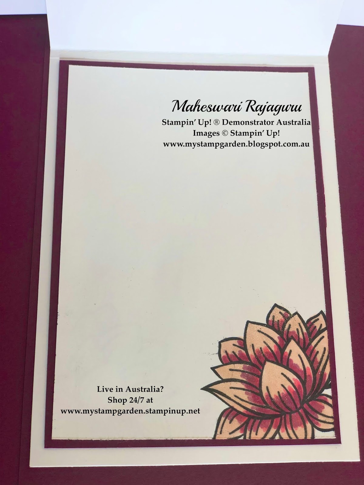 All the Images © Stampin' Up!® unless stated. All the content, in this blog, is the sole responsibility of Maheswari Rajaguru, Independent Stampin' Up!® Demonstrator Australia. The use of materials for classes, services, card designs or product offered is not endorsed by Stampin' Up! and should be used only for personal use.