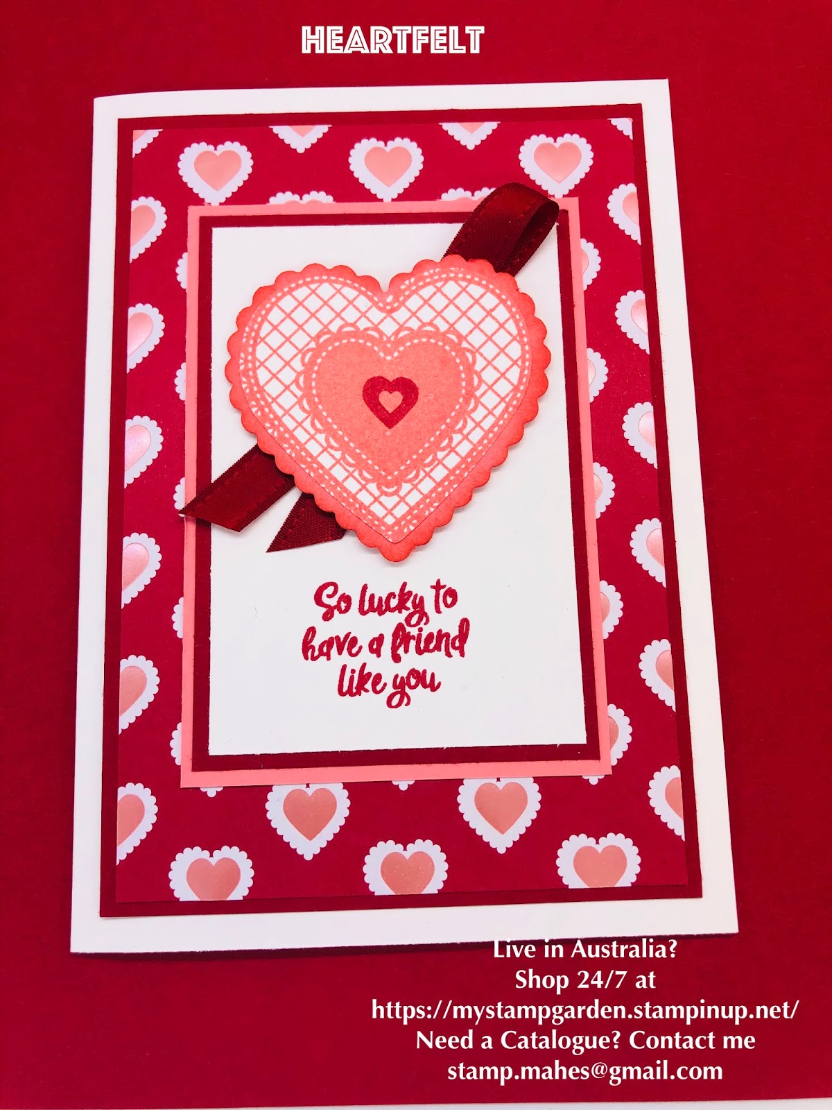 If you need any of the Stampin’ Supplies and if you need a hard copy of a catalogue please contact me I am happy to send you and be your Demonstrator if you are in Australia.
