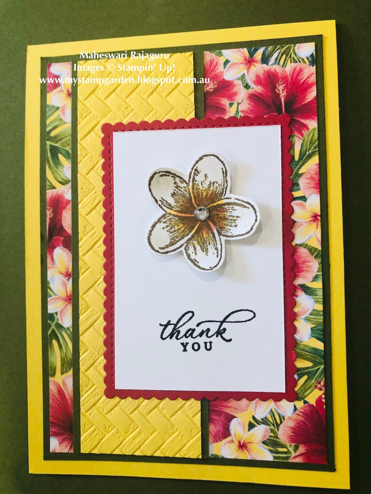 Catalogue -2020 and stamped the flower by soft suede Ink. Sentiments from the same stamp set TROPICAL OASIS. A must have bundle from the Mini Catalogue 2020.