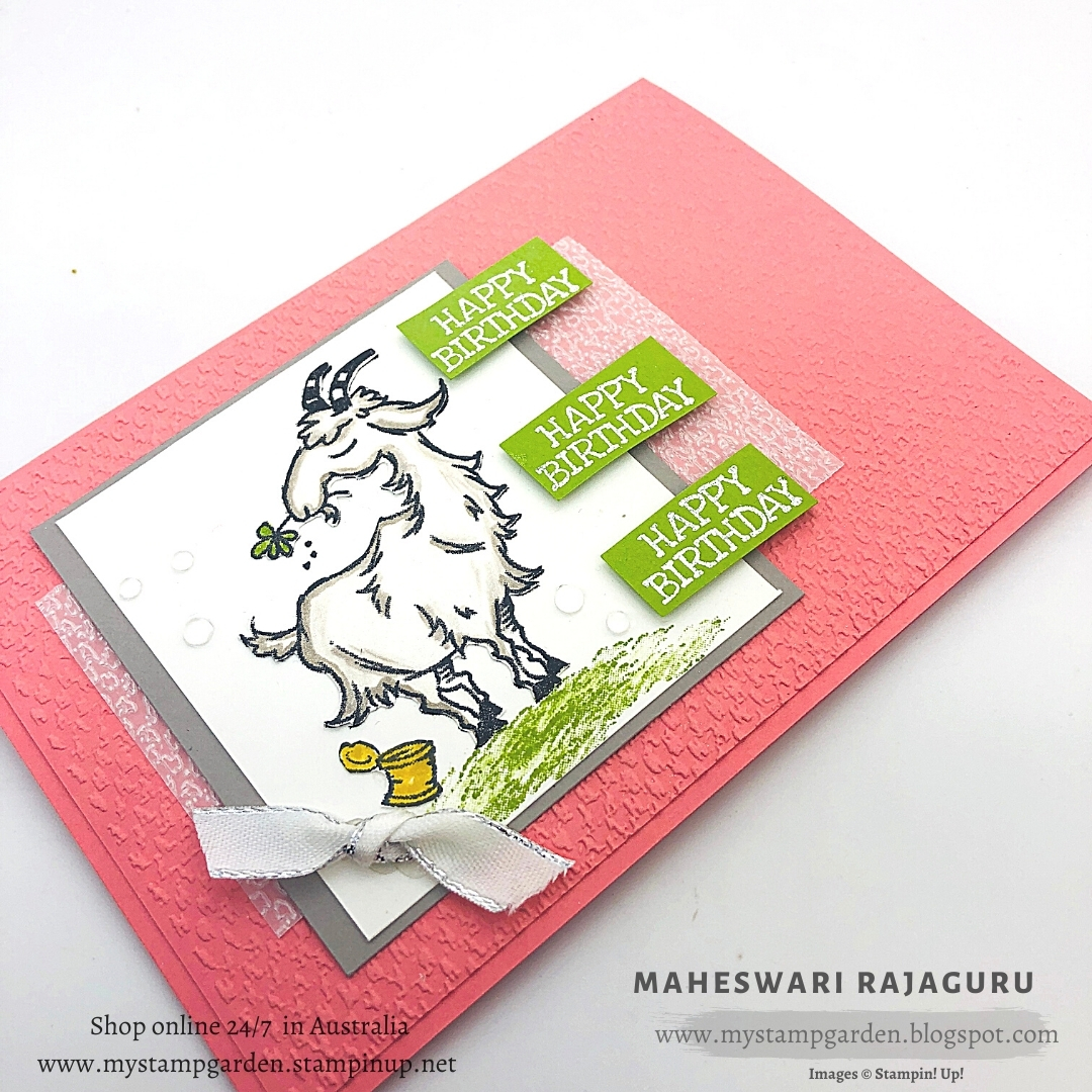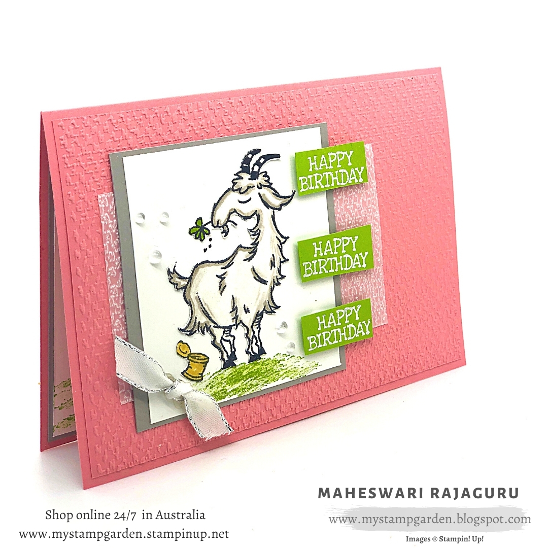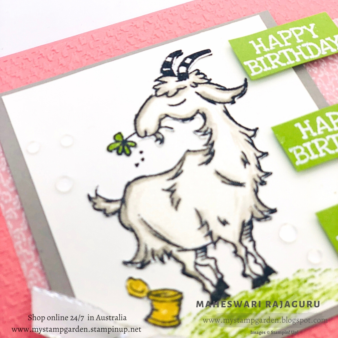 I used Stampin’ Up! ‘ Way to Goat ‘ stamp set. This is my first card using this stamp set.