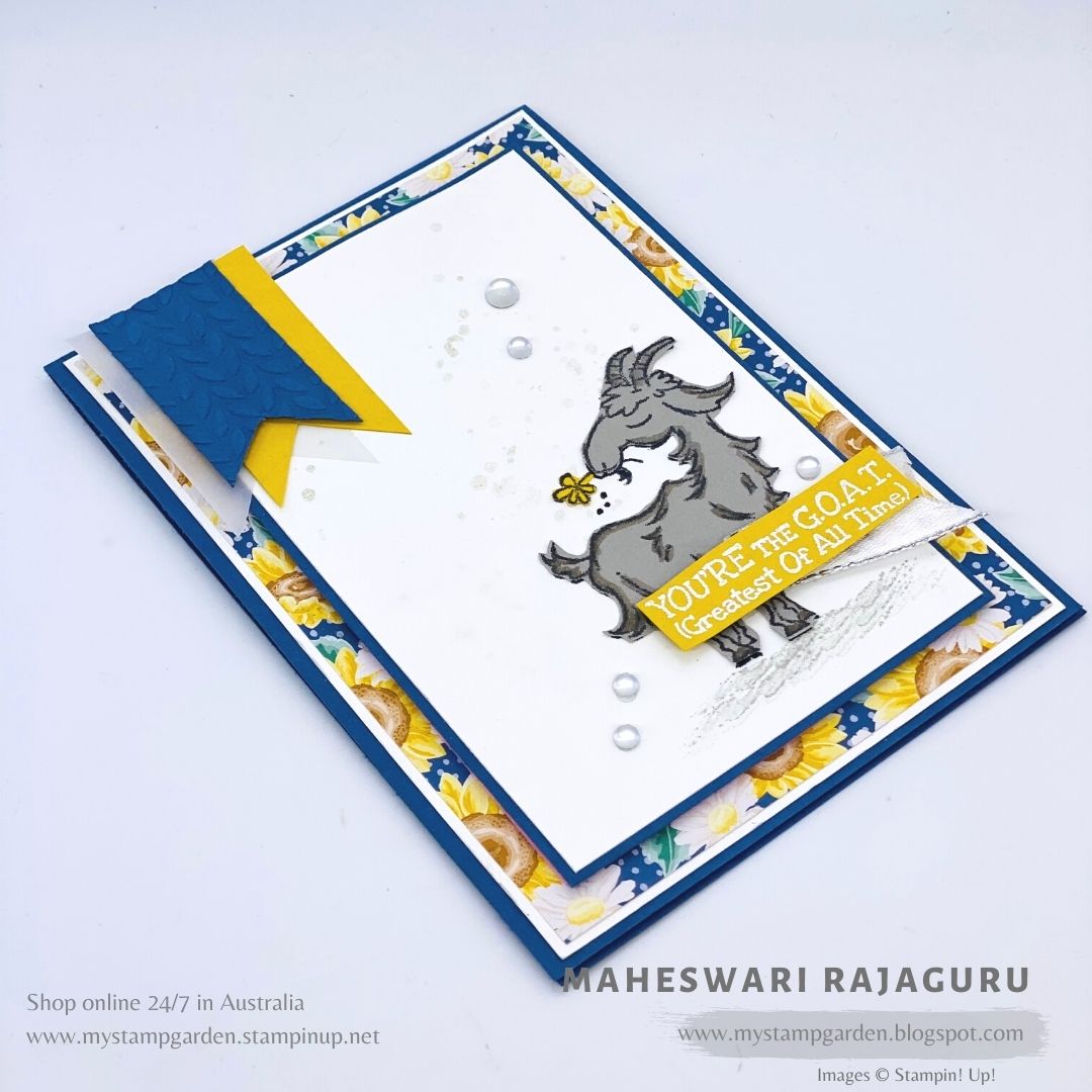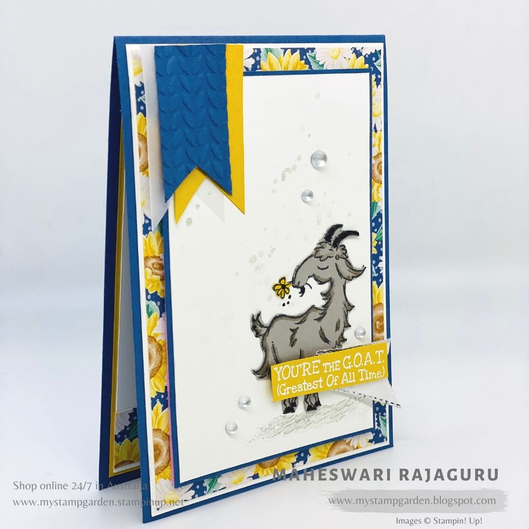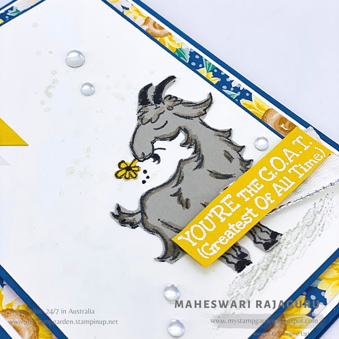 I used Stampin’ Up! Way to Goat stamp set. All the product which I used here are available at my Online shop