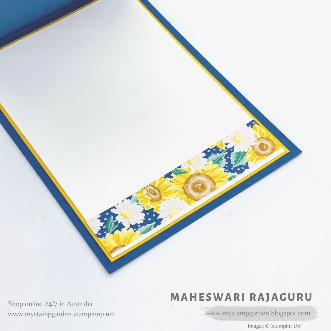 I decorated inside simply by using the Designer Series Paper with the layers of cards bumblebee and Whisper White.