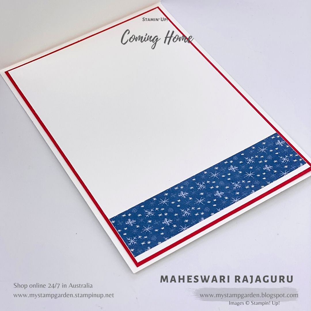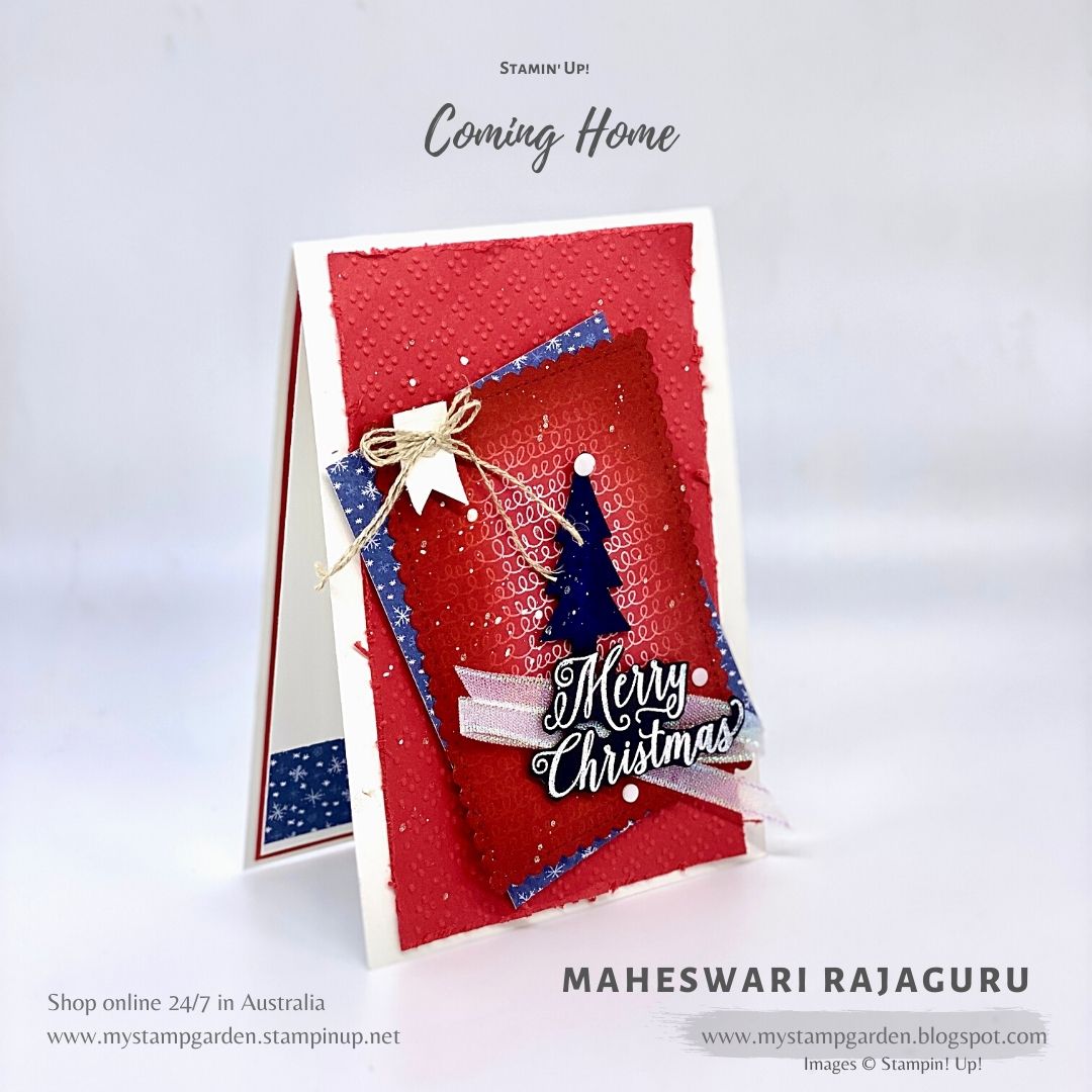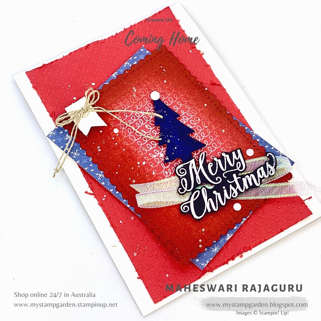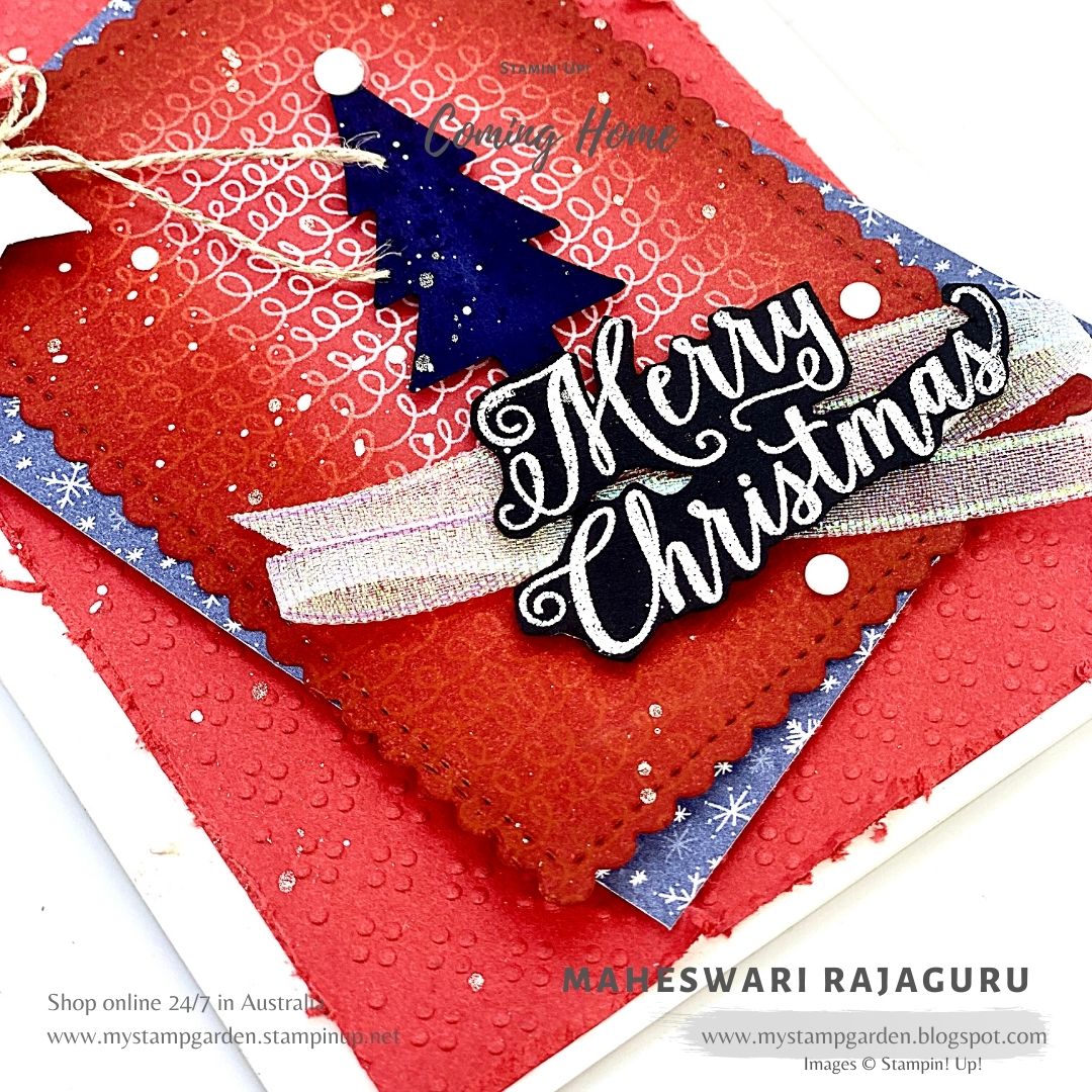 I used Stampin’ Up! ‘ Coming Home ‘ Dies and ‘ Christmas Rose ‘ Stamp set for the sentiment.