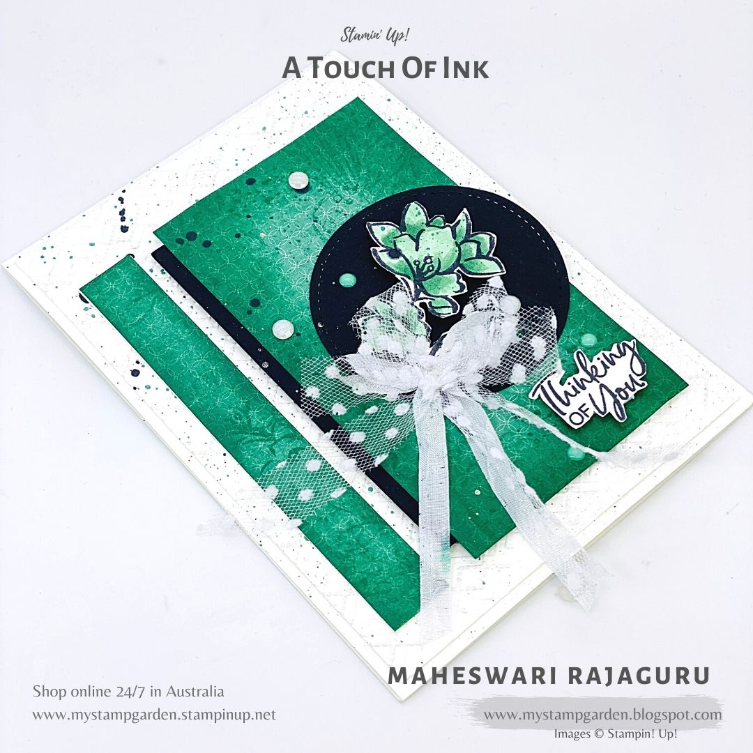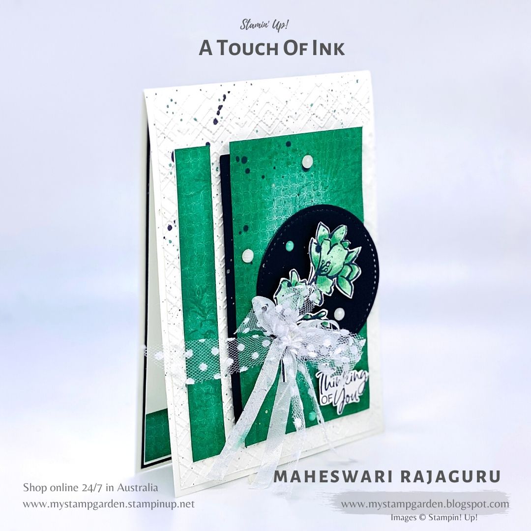 I used Stampin’ Up! ‘ A touch of Ink ‘ Stamp set. It’s a Sale- A -Bration Free Stamp set, available to all customers from January 5th, 2021. But you can add it to your get it now, Contact me to know more about it.