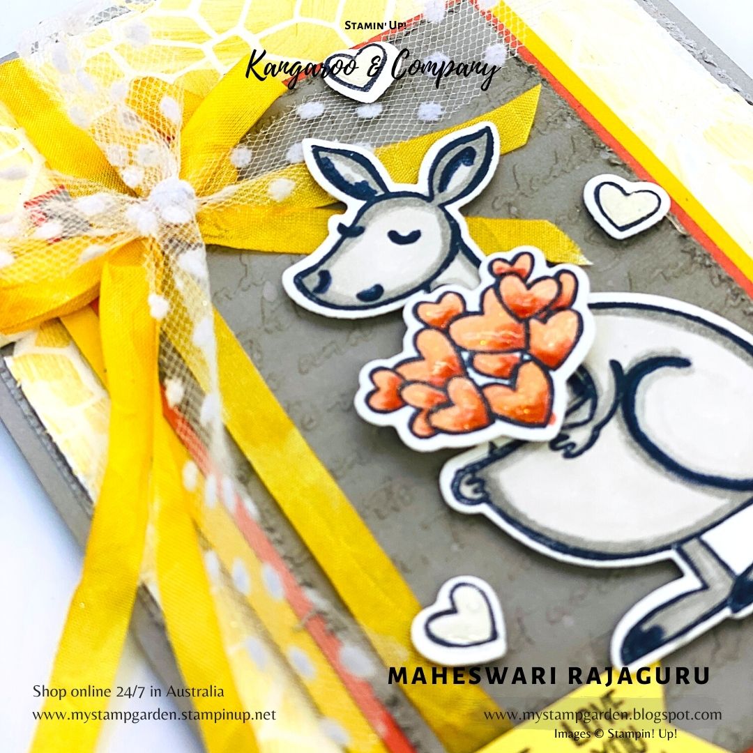 - Added Stampin’ Dimensional to touch the Kangaroo and the mini hearts in the front.