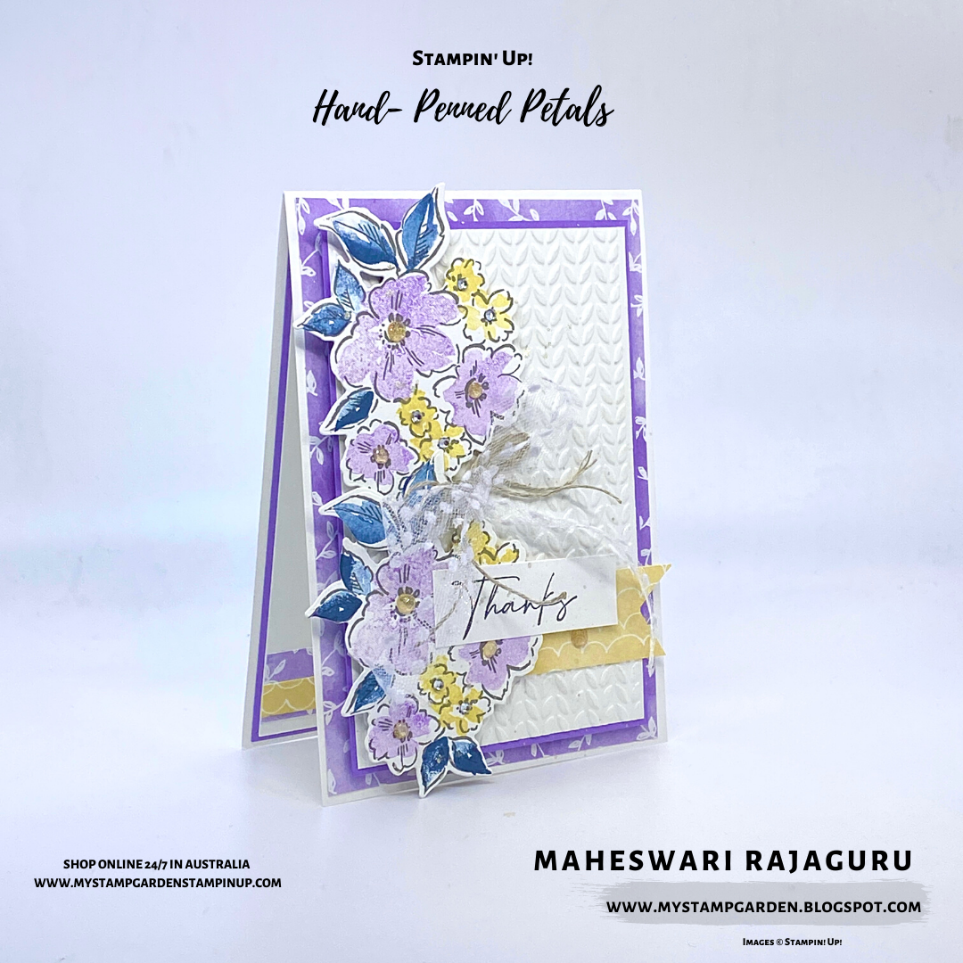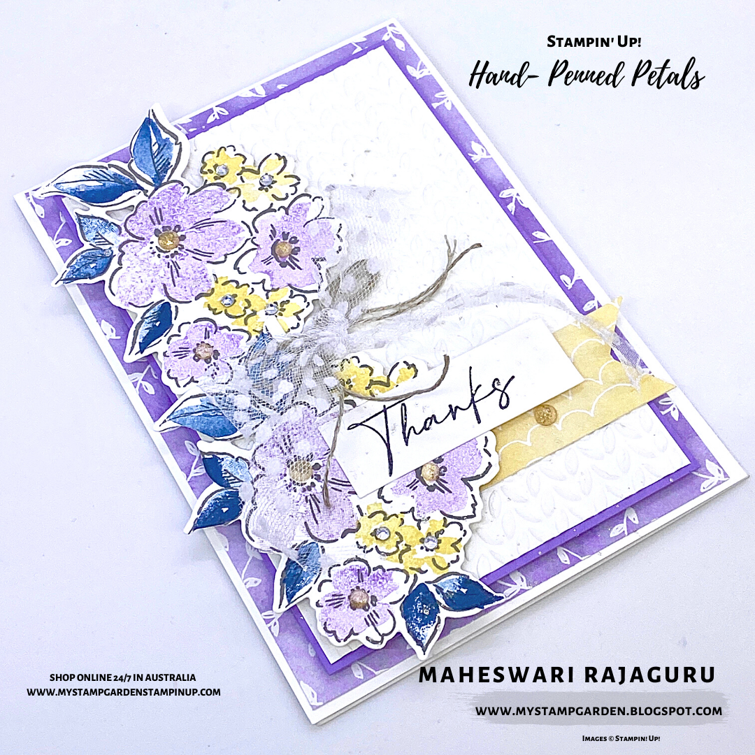 I used the Stampin’ Up! Hand Penned Petals from the New Annual Catalogue 2021-2022.