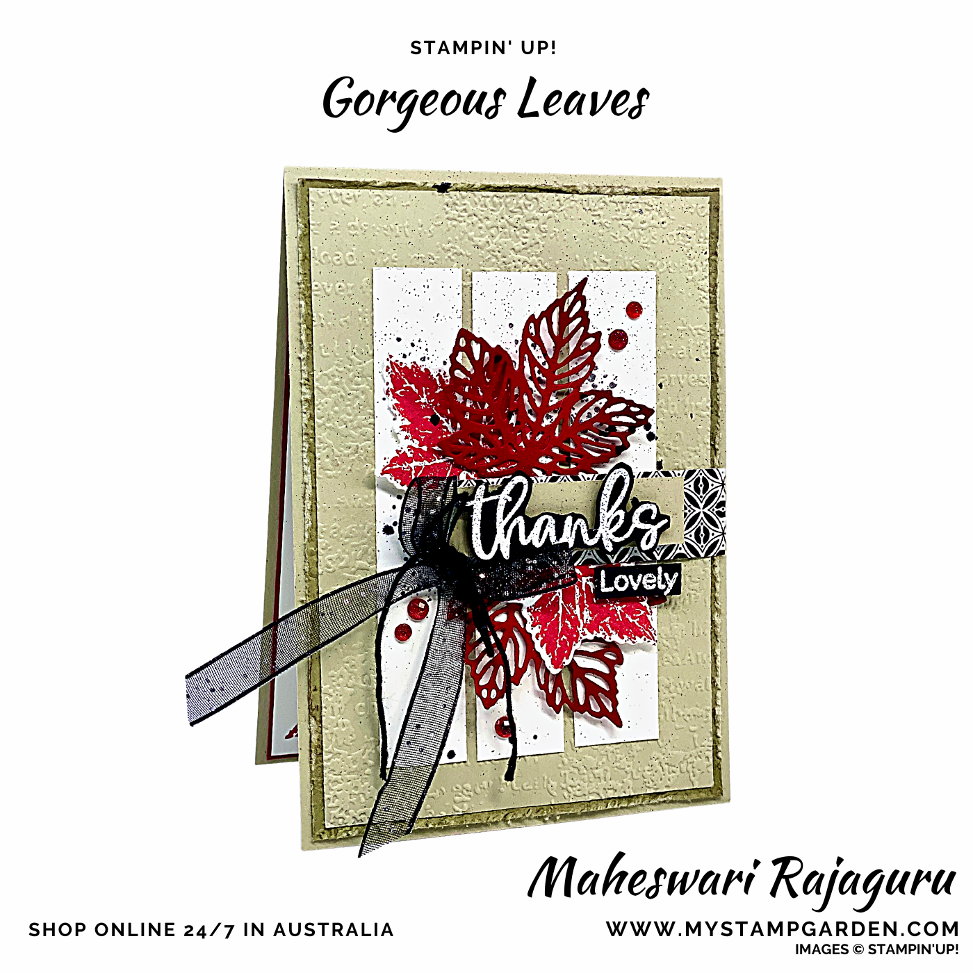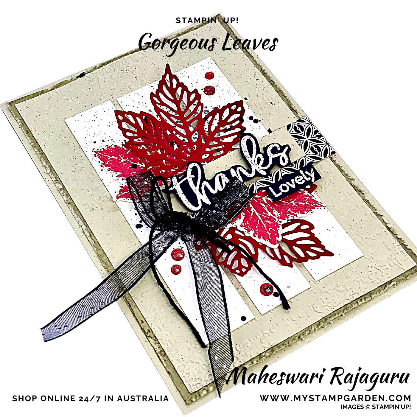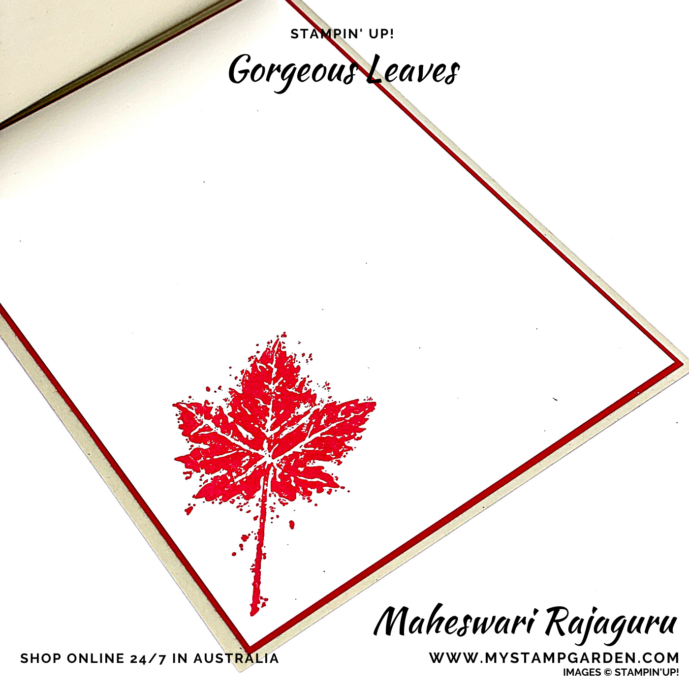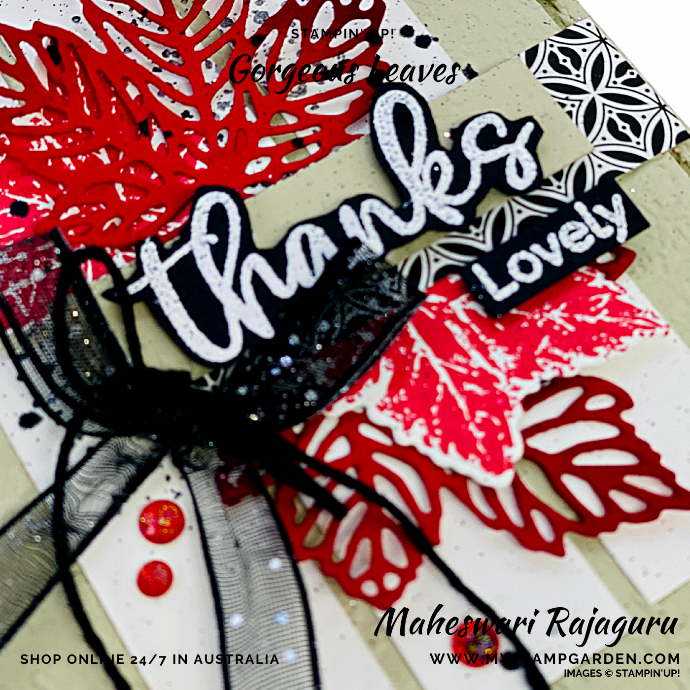 I used the ‘ Gorgeous Leaves ‘ stamp set for the leaves. In addition, I used two different stamp sets for the sentiment ‘Art Gallery ‘ and ‘Biggest Wish ‘ stamp set.