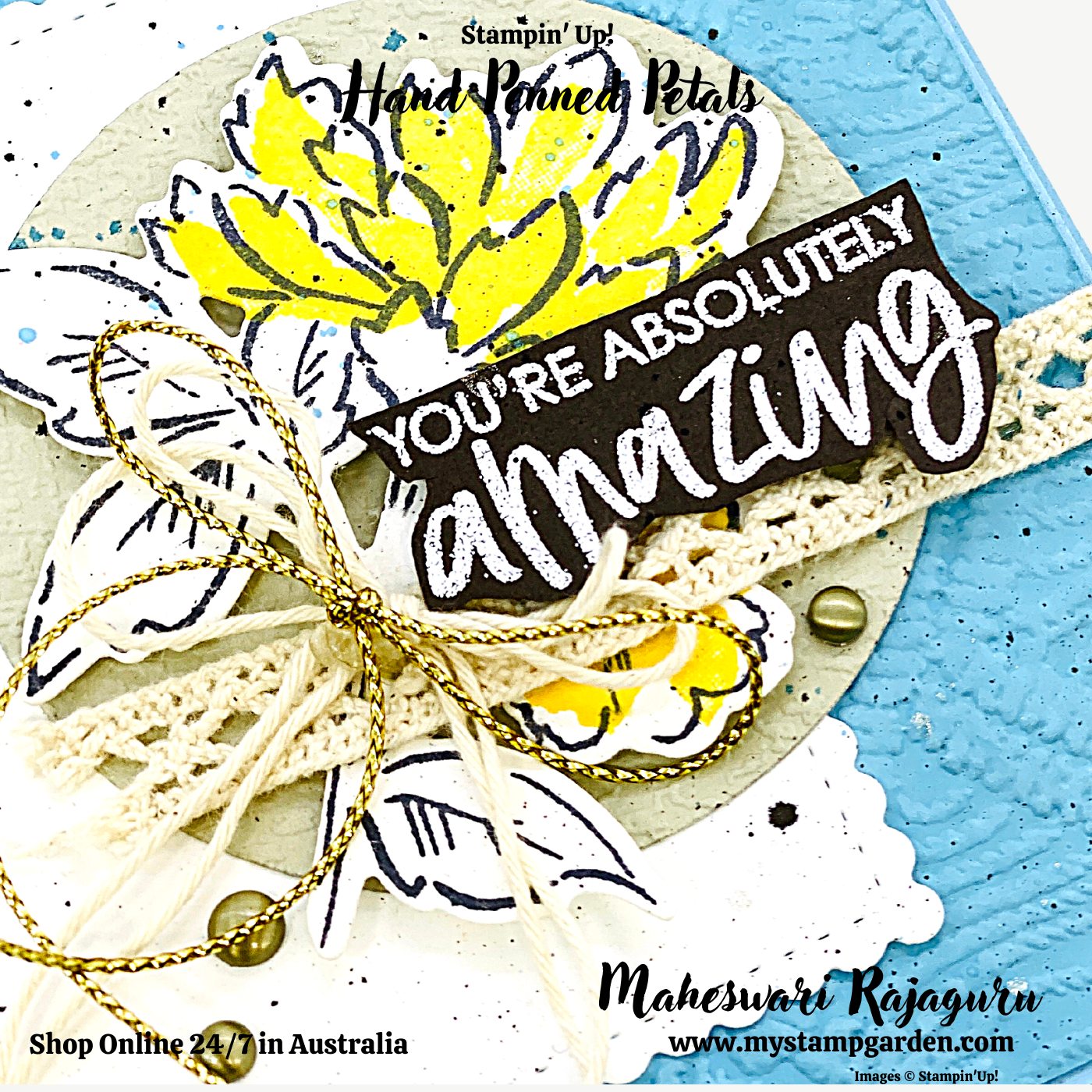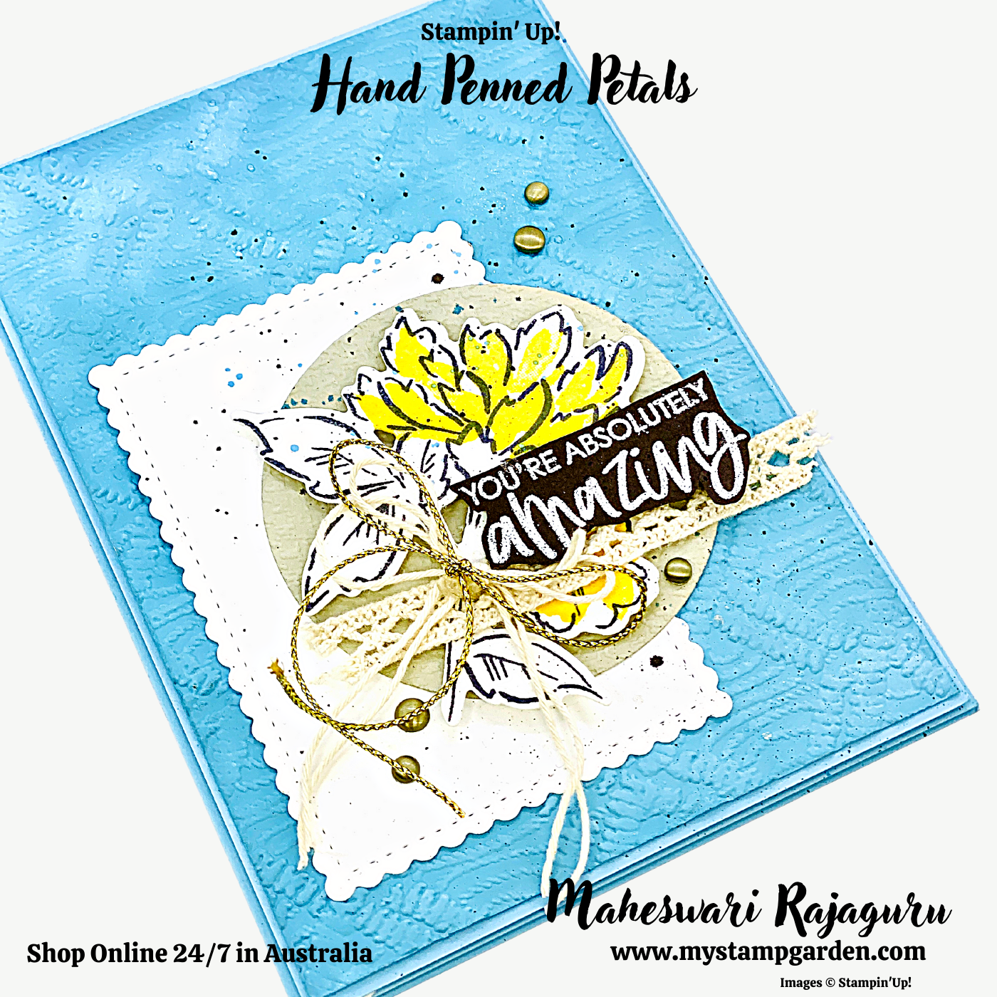- Using Layering circle dies and embossed using Tasteful textile 3D embossing folder.