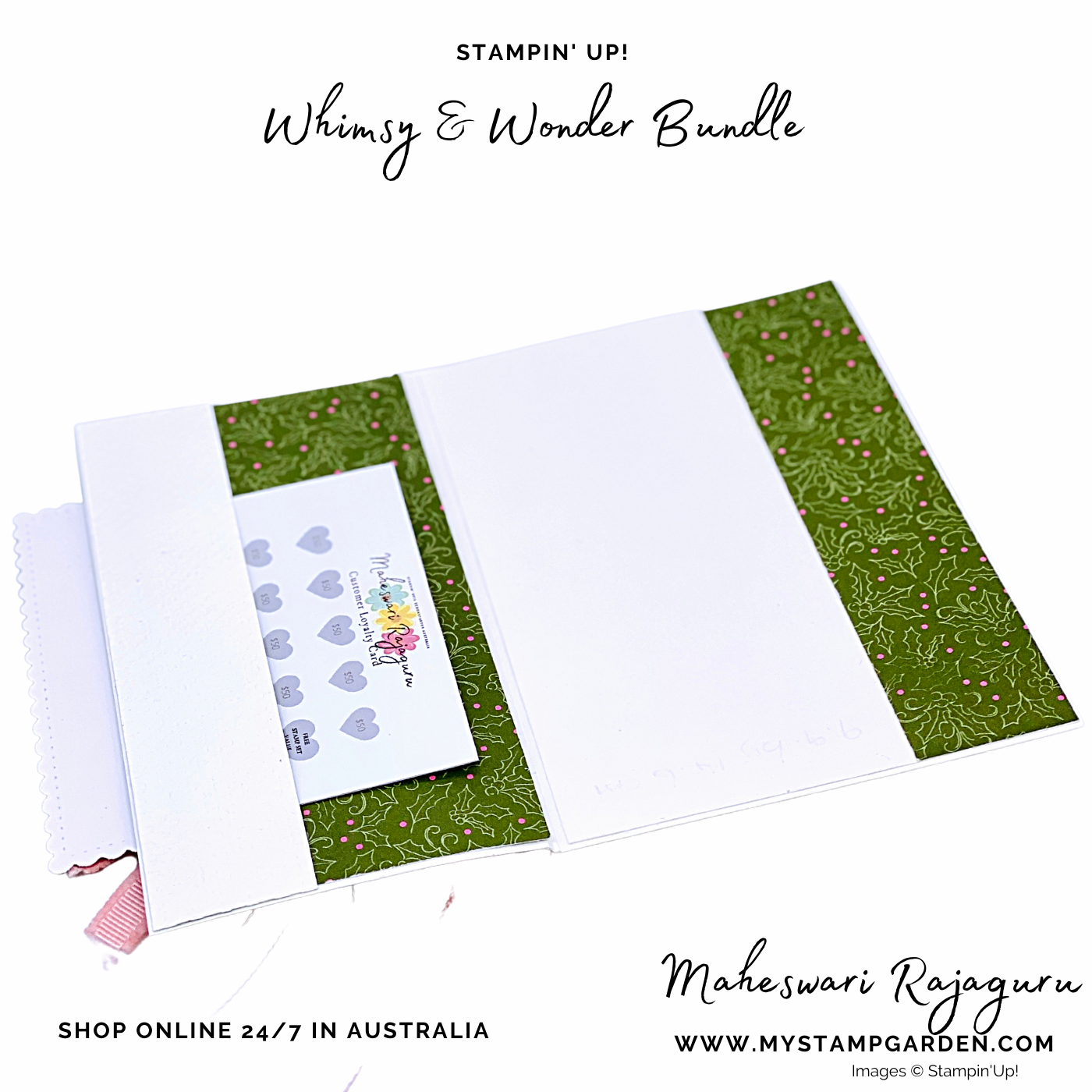 To insert the Gift card, I added the embossed basic white cardstock on the side and applied glue only on the two corners of the card.