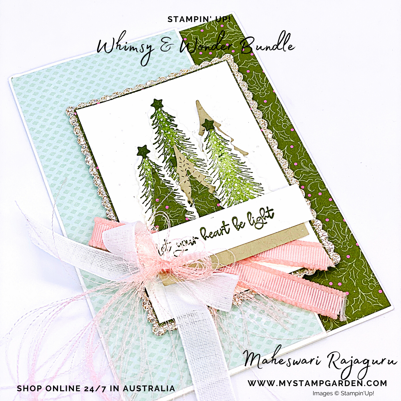 My today’s card using the beautiful Whimsical Trees Bundle. All the product which used here is available in my Online Store. Check out the image at the bottom of the blog post will take you straight to my Online Shop.