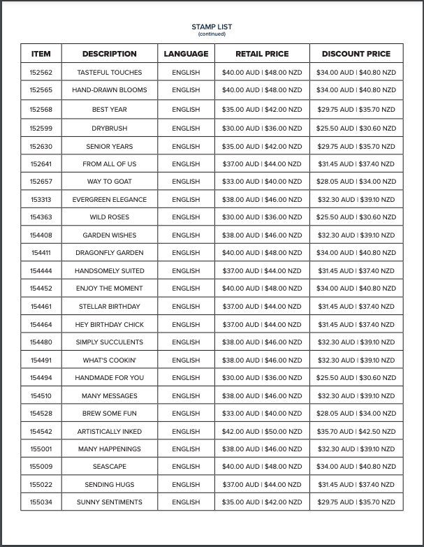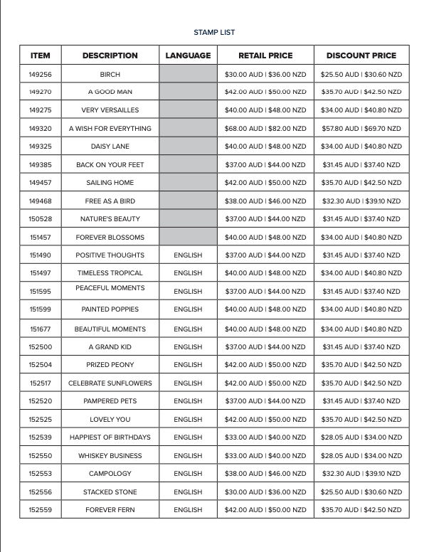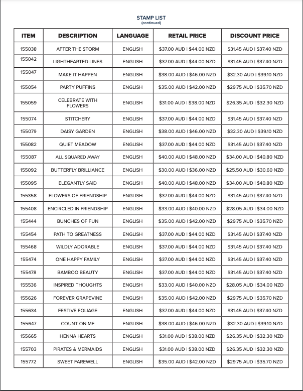 - Every Stamp set from the 2021-2022 Annual Catalogue ( excluding Host Stamp sets ) will be discounted.