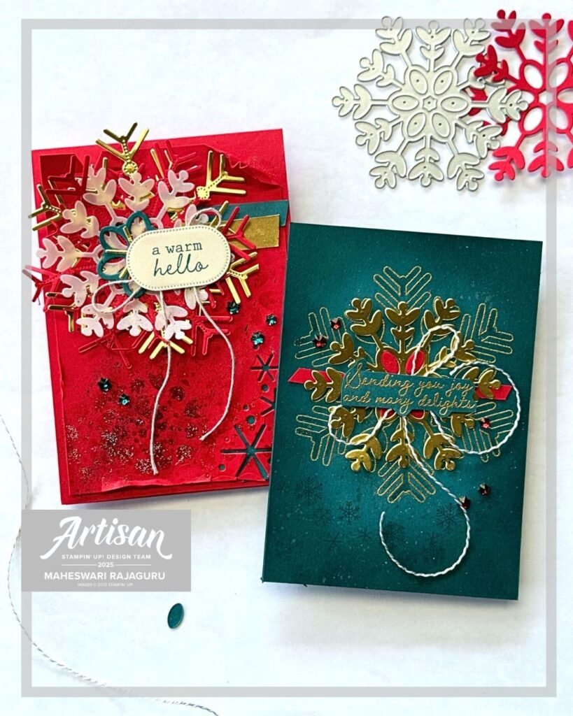 • Finish by adding the die-cut snowflakes from Gold Foil Sheets for an elegant touch of shine.