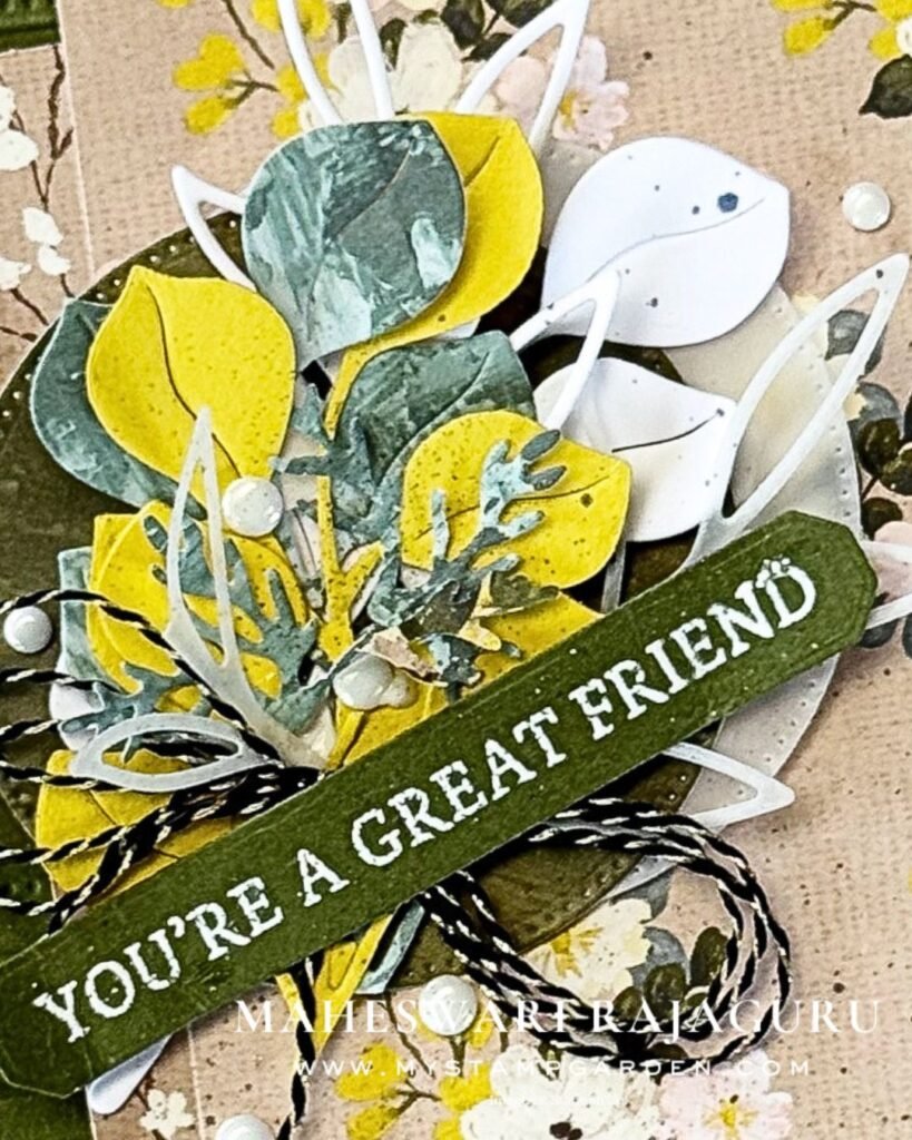 - Die-cut the leaves from the Basic White, Darling Duckling, DSP and Vellum.