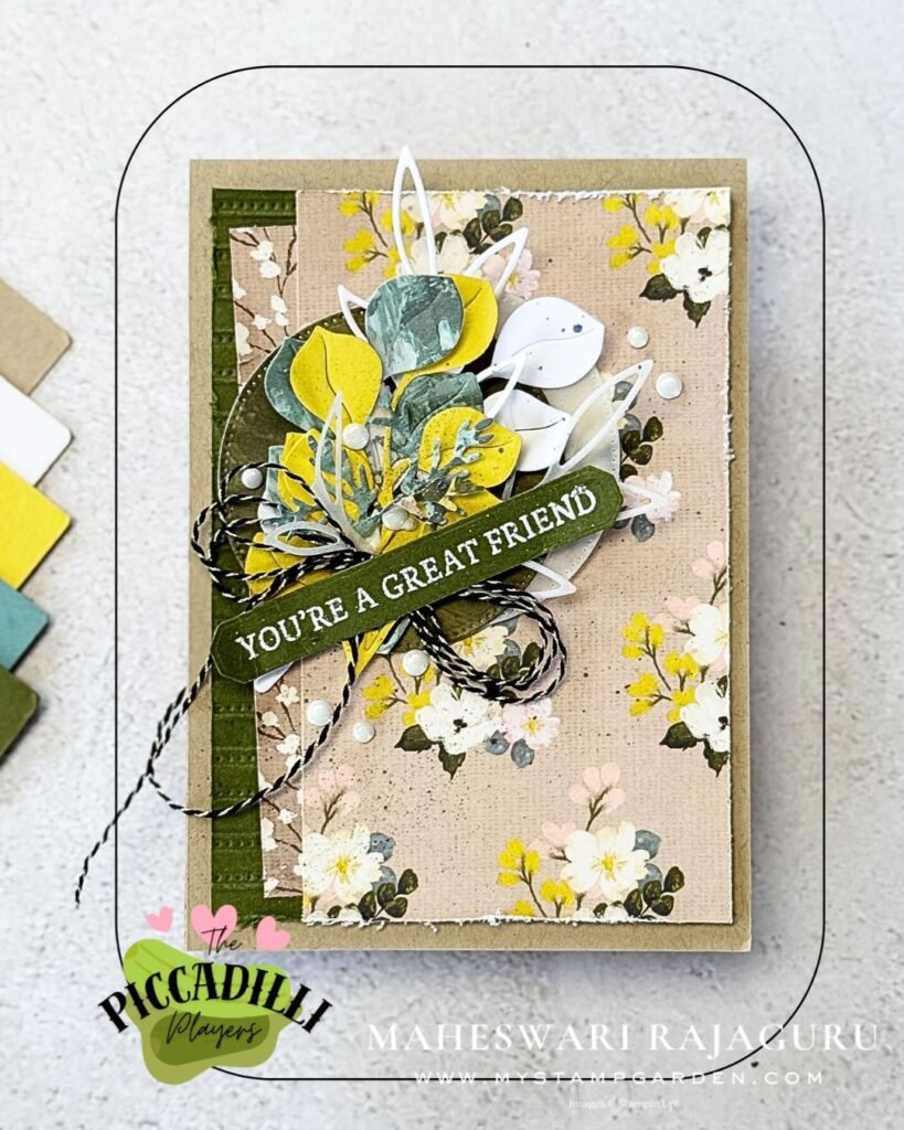 For my card, I reached for the Brushed with Petals Suite. I love how versatile this suite is – it makes mixing and matching effortless. I used one of the stamp sets along with the die-cut pieces to build the main focal elements, adding lovely layers and texture. For the finishing touch, I chose a sentiment from the coordinating stamp set, which tied everything together beautifully.