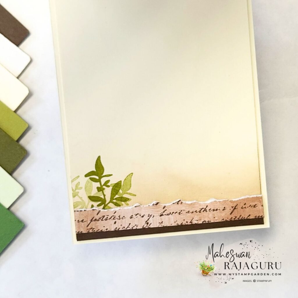- Used 2 DSP with the Early espresso Cardstock, I teared the cards on one end of it and add it to the layer 1 Very Vanilla cardstock using glue.